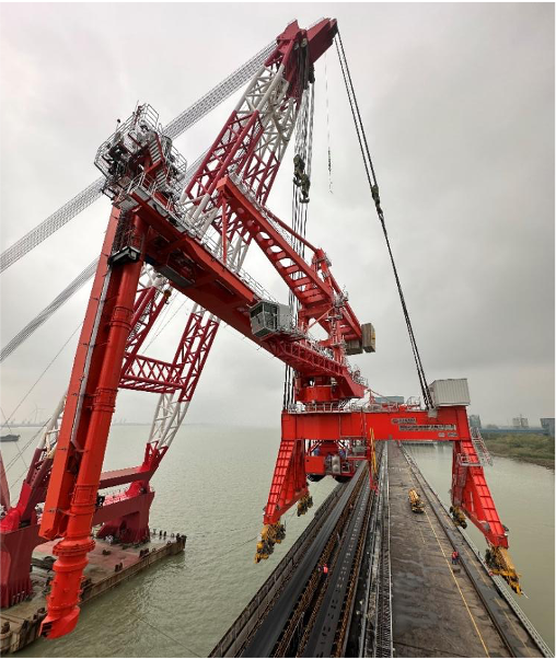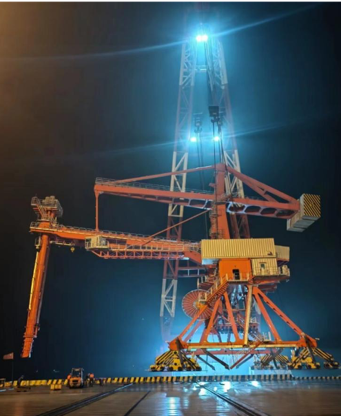 為不影響業主碼頭的正常生產,自11月16日從華新機電張家港碼頭總裝場地開始,在項目組的科學統籌謀劃下,工作人員加班加點,克服了大雨、夜間作業的困難,鼓足干勁,經過四天三夜連續工作后,將該臺螺旋卸船機安全地運至業主碼頭并成功吊裝就位,后續將在短暫的現場調試后開始投入試運行。