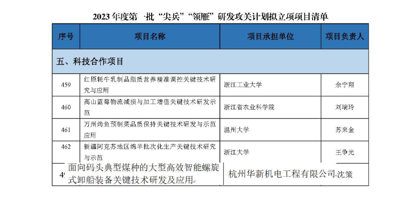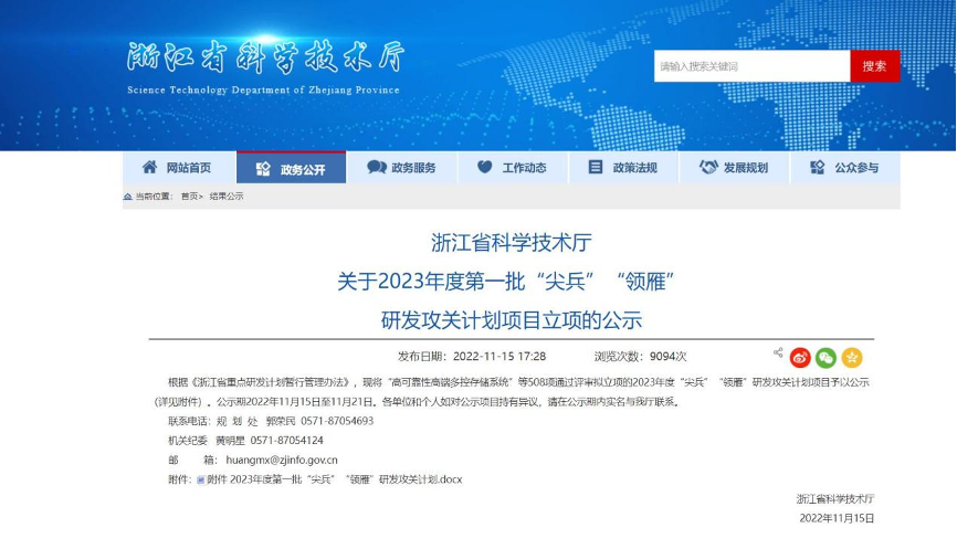 根據《浙江省重點研發計劃暫行管理辦法》,近日,浙江省科學技術廳公布了2023年度尖兵領雁研發攻關計劃立項名單,公司申報的項目獲批立項。