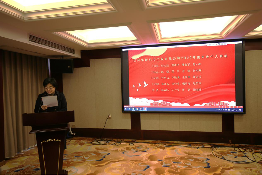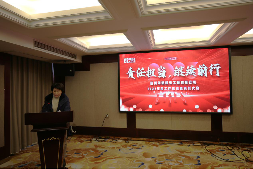 春華秋實又一載,砥礪奮進續新篇章。2023年1月15日上午,華新機電組織舉辦了2022年度工作總結暨表彰大會。華新機電、海重重工、天新研究院、余杭分公司中高管及廣大員工共計八十余人參加了年度總結暨表彰大會,大會由公司黨委副書記、副總經理袁穎主持。
