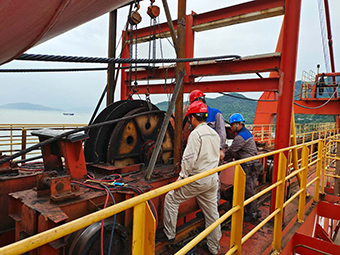 面對工期緊張、來船靠泊、連續(xù)降雨等不利因素,項(xiàng)目團(tuán)隊(duì)第一時間和業(yè)主溝通準(zhǔn)備入場資料,連夜組織協(xié)調(diào)施工人員趕赴現(xiàn)場,迅速制定施工“作戰(zhàn)圖”,打通施工通道,組織平行作業(yè),盡全力保證各項(xiàng)工作有序開展,最終提前半天完成3號卸船機(jī)大臂鉸接點(diǎn)軸承及主小車滑輪組更換工作。