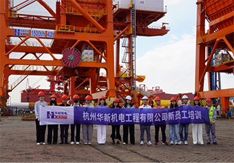 進行嚴格的安全教育學習后,在張家港駐場的華新機電工程師們熱心地為新員工們講解起現場已經組裝完成的卸船機、裝船機、門座式起重機等產品,從生產制造、組建安裝到實際運作模式、滾裝發運案例等,學員們不僅真實感受到大型機械的魅力,驚嘆于機械工程的精巧和構思,更深切體會到“老”華新人們從內心油然而生的自豪感。學員們也紛紛表示希望今后能前往更多基地參觀學習。