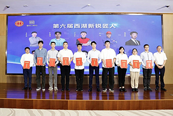 ▲圖為區人大常委會副主任、區總工會主席馬定忠為第六屆“西湖新銳匠人”頒發證書。(左一為馬智淵)