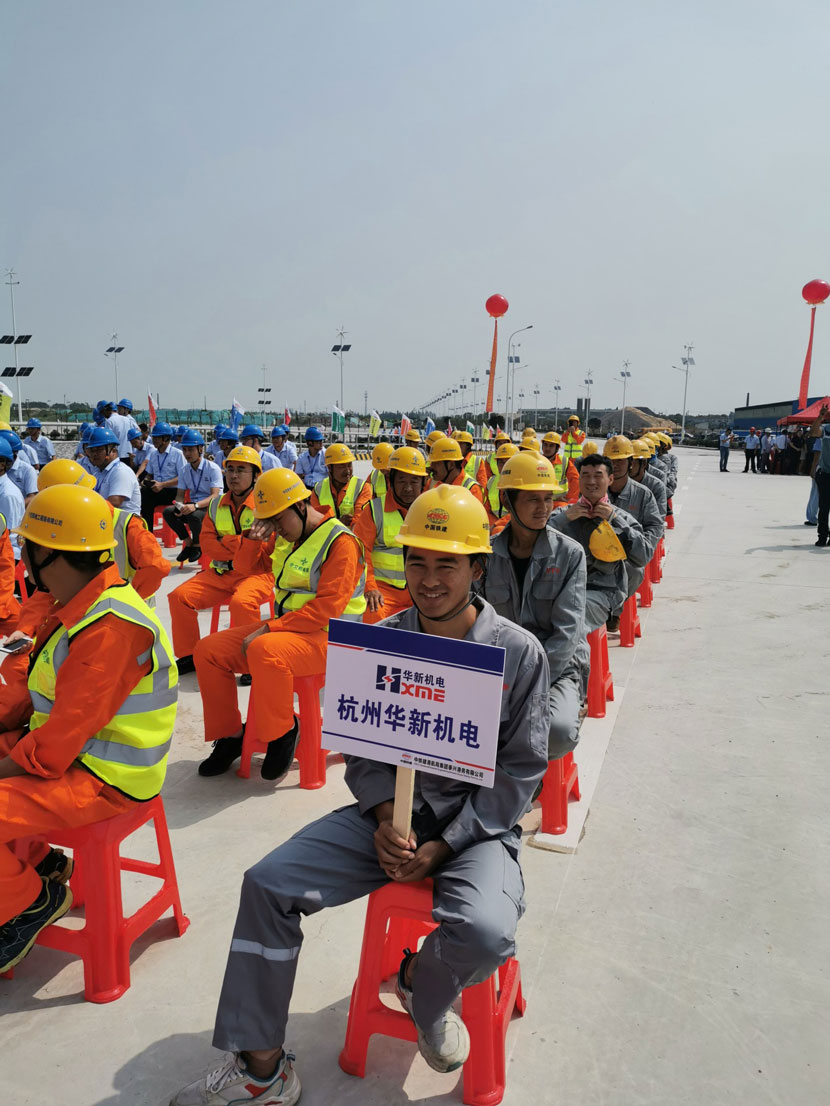 該項目于2019年10月簽訂合同,于2019年12月開工生產制造,原計劃于2020年7月交機,但由于期間疫情的影響,給生產制造及整個項目的外協廠家都帶來很多難題。在此期間,公司積極與用戶進行溝通協調,督促外協廠家合理安排工序,以彌補因疫情影響的工期;同時,華新機電無錫制造基地及時調整了工作計劃,加班加點趕制本項目的結構件;現場安裝隊更是與時間賽跑,為了保證工程節點,在確保安全的前提下,提出“大雨小干,小雨大干,天好加勁干”的口號,白天埋頭苦干,晚上加班施工,“5+2”,“白加黑”是他們的工作常態。