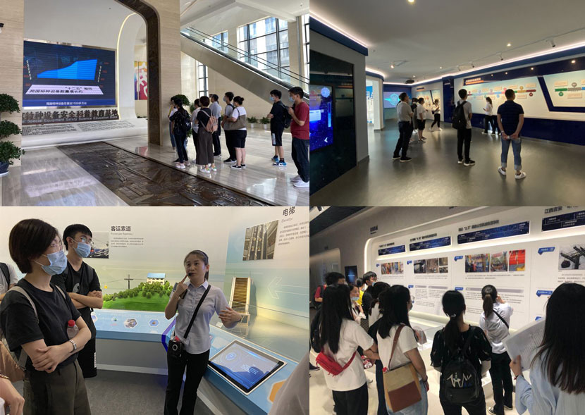 參觀特檢院展館,認真聆聽講解員介紹起重機行業歷史,操作館內模型。