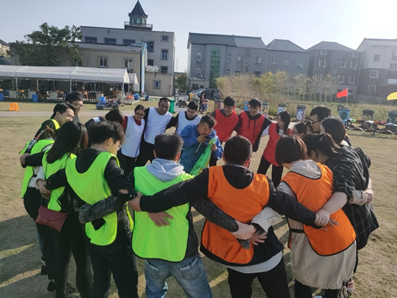 接下來是由團建教練帶領大家進行團建前的熱身以及“排兵布陣”小活動。