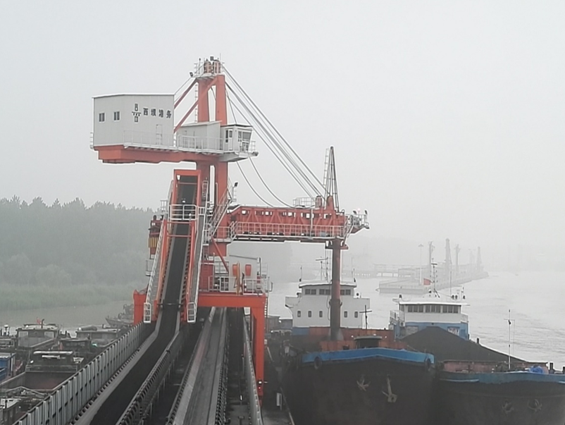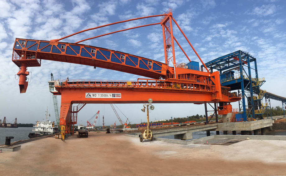 為適應電廠、港口等用戶的需求,公司2003年為連云港新陸橋設計總包的3000/1000t/h、2005年為太倉電廠設計總包的1500/600t/h裝卸一體機,現(xiàn)已為用戶提供了可裝多種物料如煤、砂石料、水泥、石膏的裝船機、全封閉帶除塵環(huán)保裝船機,生產(chǎn)的最大生產(chǎn)率裝船機為南京西壩的4500t/h裝船機,后又為池州九神山提供了5臺3000t/h裝船機于2019年6月正式投入使用。